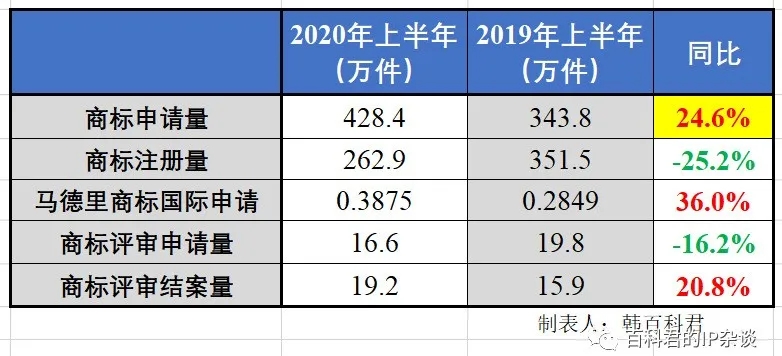 比較驚訝的是商標(biāo)申請量,印象中是第一次半年破400萬,看來全年上800萬不是夢...