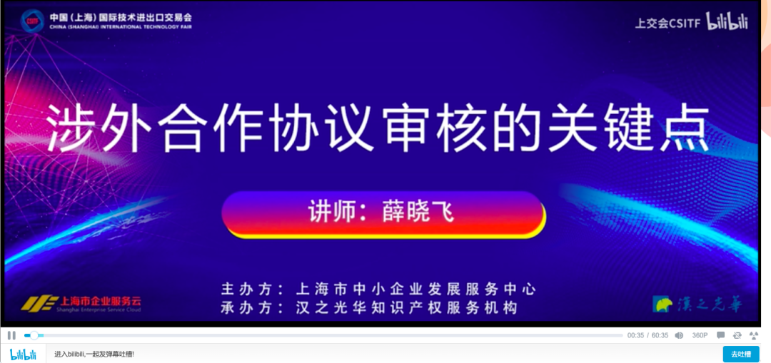 漢之光華受邀在上交會線上直播平臺開展知識產權系列分享培訓,由上海市中小企業發展服務中心主辦,漢之光華知識產權服務機構承辦,分別做了《中國專利加快審查解讀》、《如何做好企業知識產權工作》、《涉外合作協議審核的關鍵點》、《案例說明企業如何進行專利商標糾紛維權》4場精彩的線上課程。