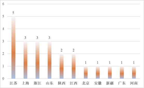 對23家新能源領(lǐng)域科創(chuàng)板注冊生效的企業(yè)注冊地進(jìn)行了統(tǒng)計(jì)分析,發(fā)現(xiàn)注冊地主要集中在沿海經(jīng)濟(jì)發(fā)達(dá)地區(qū)以及中部城市,以江蘇最多有5家,領(lǐng)跑科創(chuàng)板新能源領(lǐng)域!其次是上海、浙江和山東,各有3家。值得一提的是,江蘇省也是在科創(chuàng)板上市企業(yè)數(shù)量率先突破100家的省份!