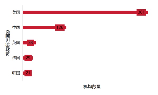 圖二 全球在研機構所在國家/地區分布(前5名)
