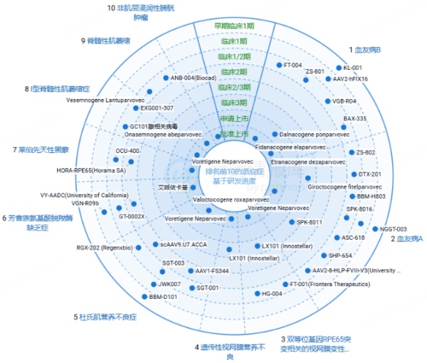 圖三 AAV基因治療藥物靶點分布(前5名)