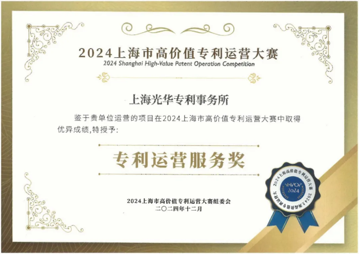 光華所榮獲2024上海高價值專利運營大賽“專利運營服務獎”