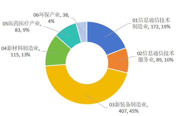 從本屆獲獎專利從專利密集型產(chǎn)業(yè)分類來看,03新裝備制造業(yè)407件,占比接近一半01信息通信技術(shù)、04新材料制造業(yè)、02信息通信技術(shù)服務(wù)業(yè)緊隨其后占比42%。