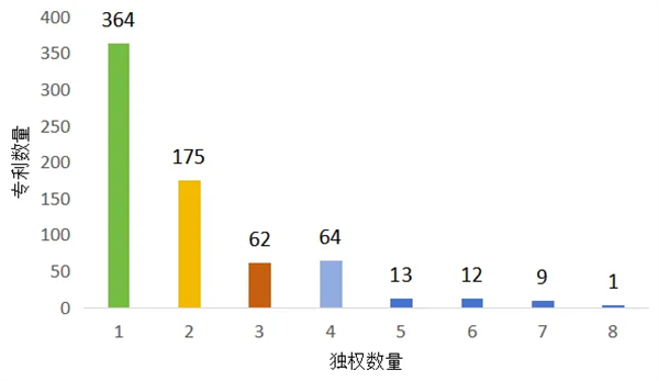 從本屆獲獎專利獨立權(quán)利要求數(shù)量統(tǒng)計來看,主要集中在1-4項。
