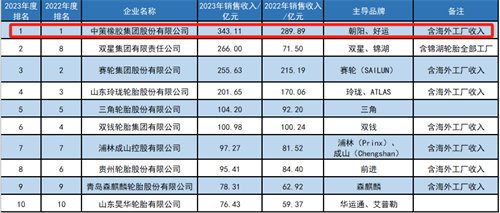 1 2024年度中國輪胎企業排行榜前10強