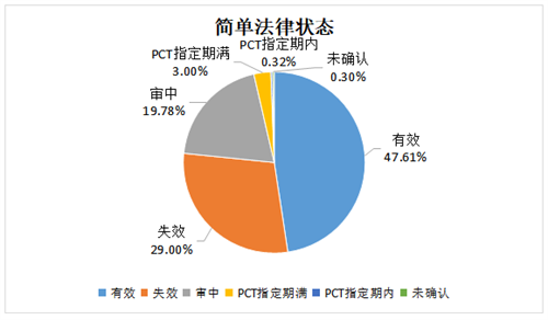 從法律狀態(tài)來看,有效專利所占比例為47.61%,接近一半的專利依然保持有效狀態(tài)。這一數(shù)據(jù)反映了企業(yè)對專利價值的重視,以及愿意支付維持費用以保障專利的持續(xù)有效性。