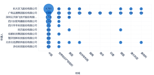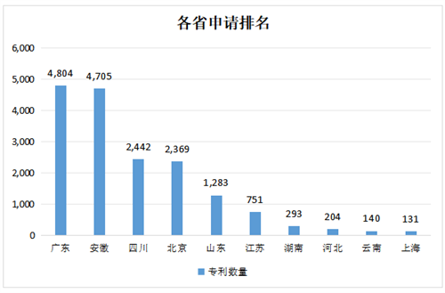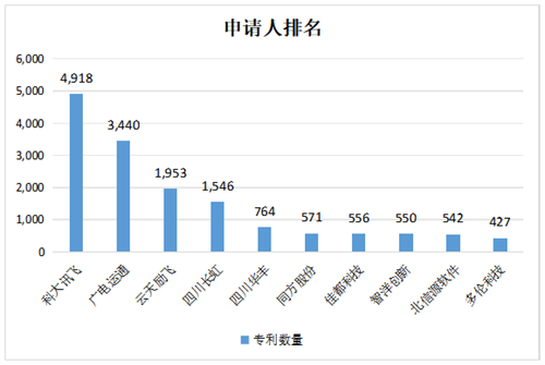從各省市排名來看,廣東省的專利申請量排名第一,其次是安徽省。廣東的創(chuàng)新實體主要有廣電運通、云天勵飛等,安徽的創(chuàng)新實體主要是科大訊飛(包含共同申請)。