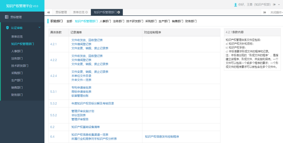 審核包括知識產權管理部門、人事部門、法務部門、技術研發部門等。